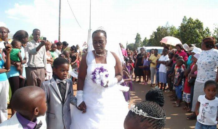 The wedding is said to have shocked the local community but Sanele’s mother Patience Masilela hit back at critics by saying it was only conducted to appease the spirit world and insisted it was more of a ritual wedding than anything legally binding.